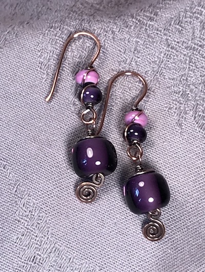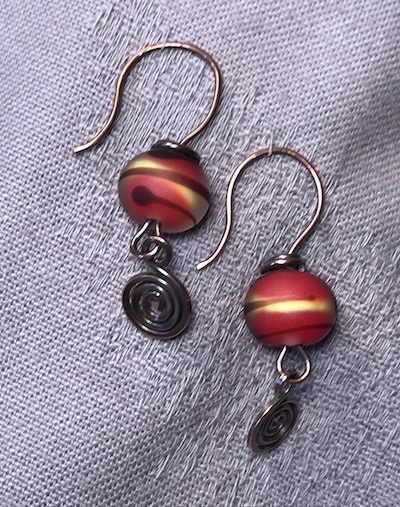 Above item: "Red Planets" Series. Copper wirework. Copper Ear Wires.