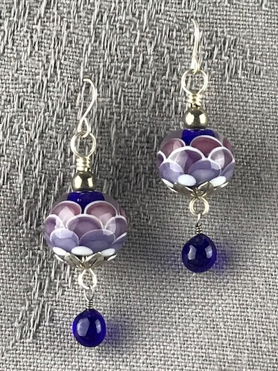 Purple & Cobalt "Lotus" Earrings. Sterling Silver wirework, findings, and earwires.