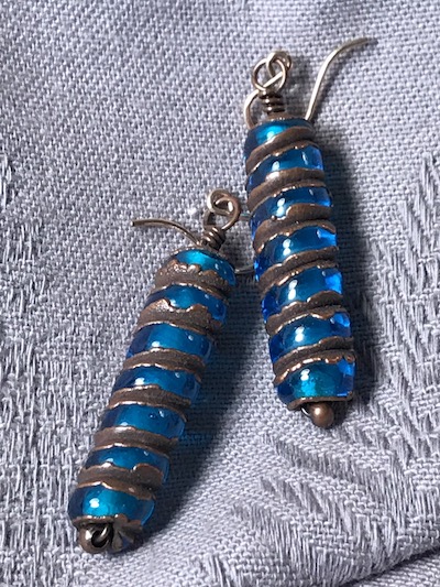 Small end pins (glass melted onto copper wire). Earwires: First pair - Niobium. Others - Sterling Silver.