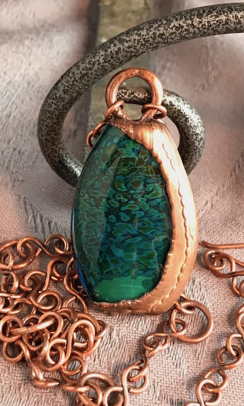 Electroformed "Faux Jade" bead. ____ " handmade, copper "Infinity & Circles" chain.