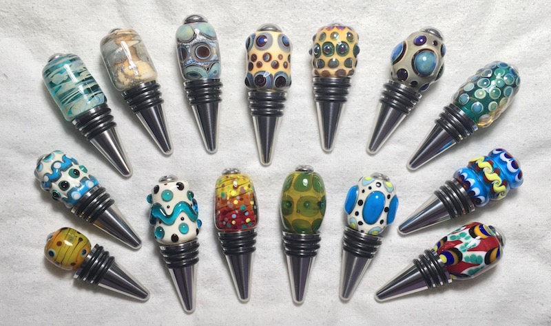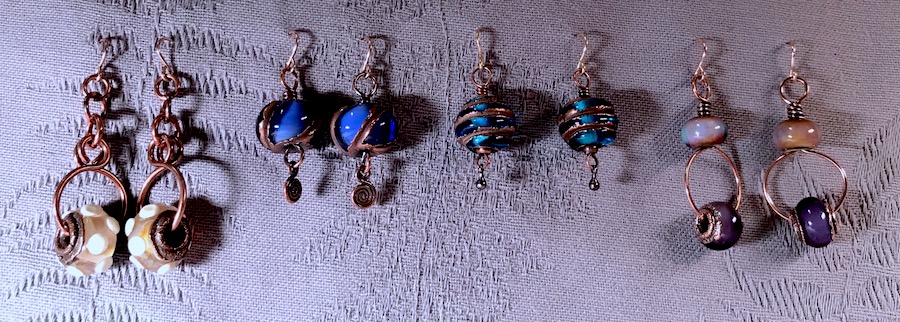 A selection of my original (1997) lampwork "Winter Snow Berries" bead series.