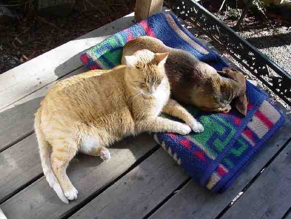 As usual, BeBe and Screamer have found a nice place to curl up together.