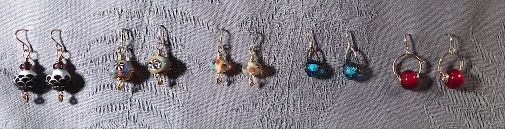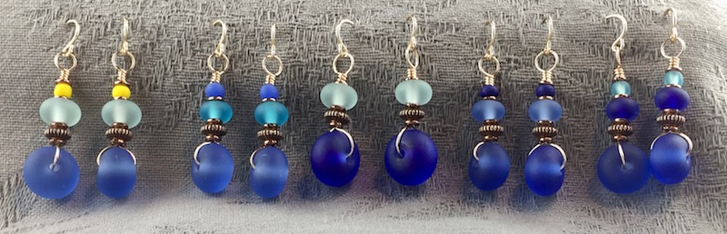 Small end pins (glass melted onto copper wire). Earwires: First pair - Niobium. Others - Sterling Silver.