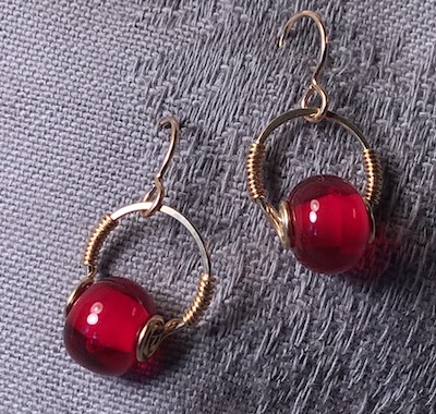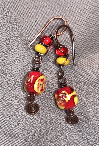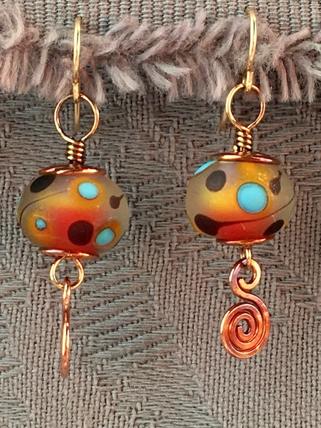 Above item: "Red Planets" Series. Copper wirework. Copper Ear Wires.